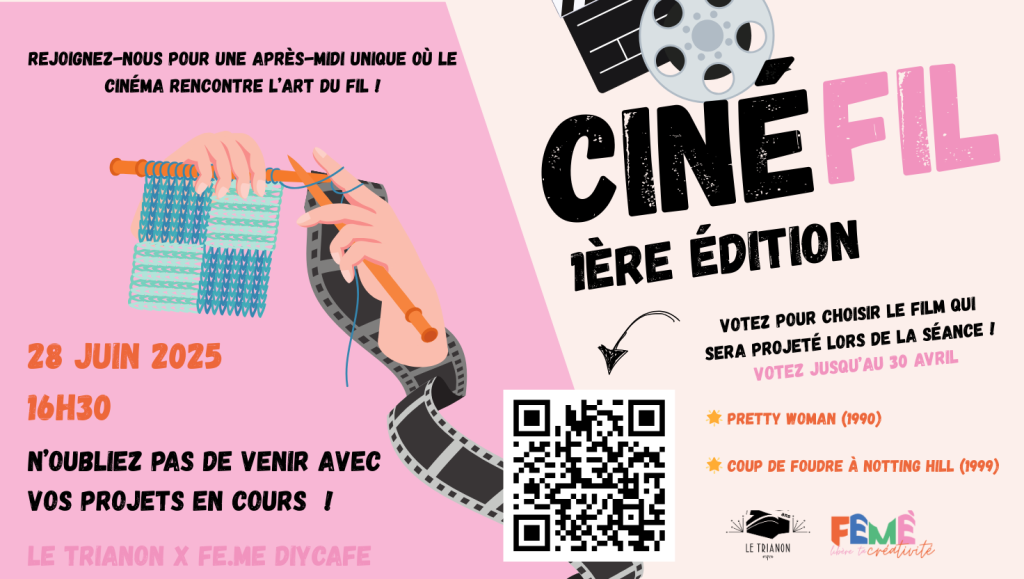 Tu aimes le tricot,crochet , broderie etc … et cherches une nouvelle manière de profiter de ta passion tout en laissant libre cours Ă ta crĂ©ativitĂ© ? PrĂ©pare-toi pour une expĂ©rience unique avec CinĂ©fil ! Pendant la projection, tu pourras tricoter, crocheter ou broder tout en plongeant dans l’univers d’un classique romantique avec la fabuleuse Julia Roberts. Que ce soit avec la lĂ©gendaire Pretty Woman ou le charmant Coup de foudre Ă Notting Hill, tu as l’occasion de choisir le film qui te fait rĂŞver ! 🤩