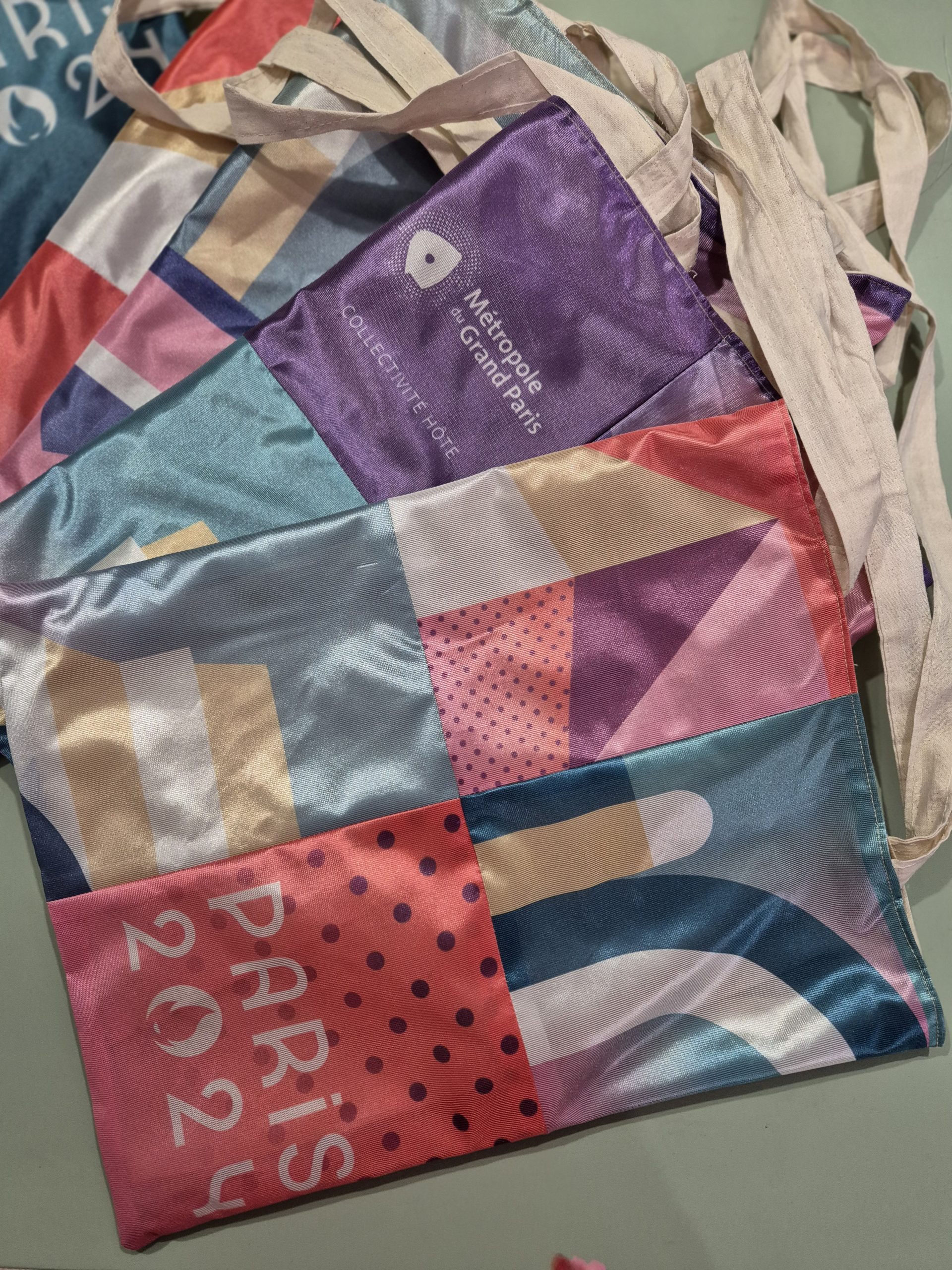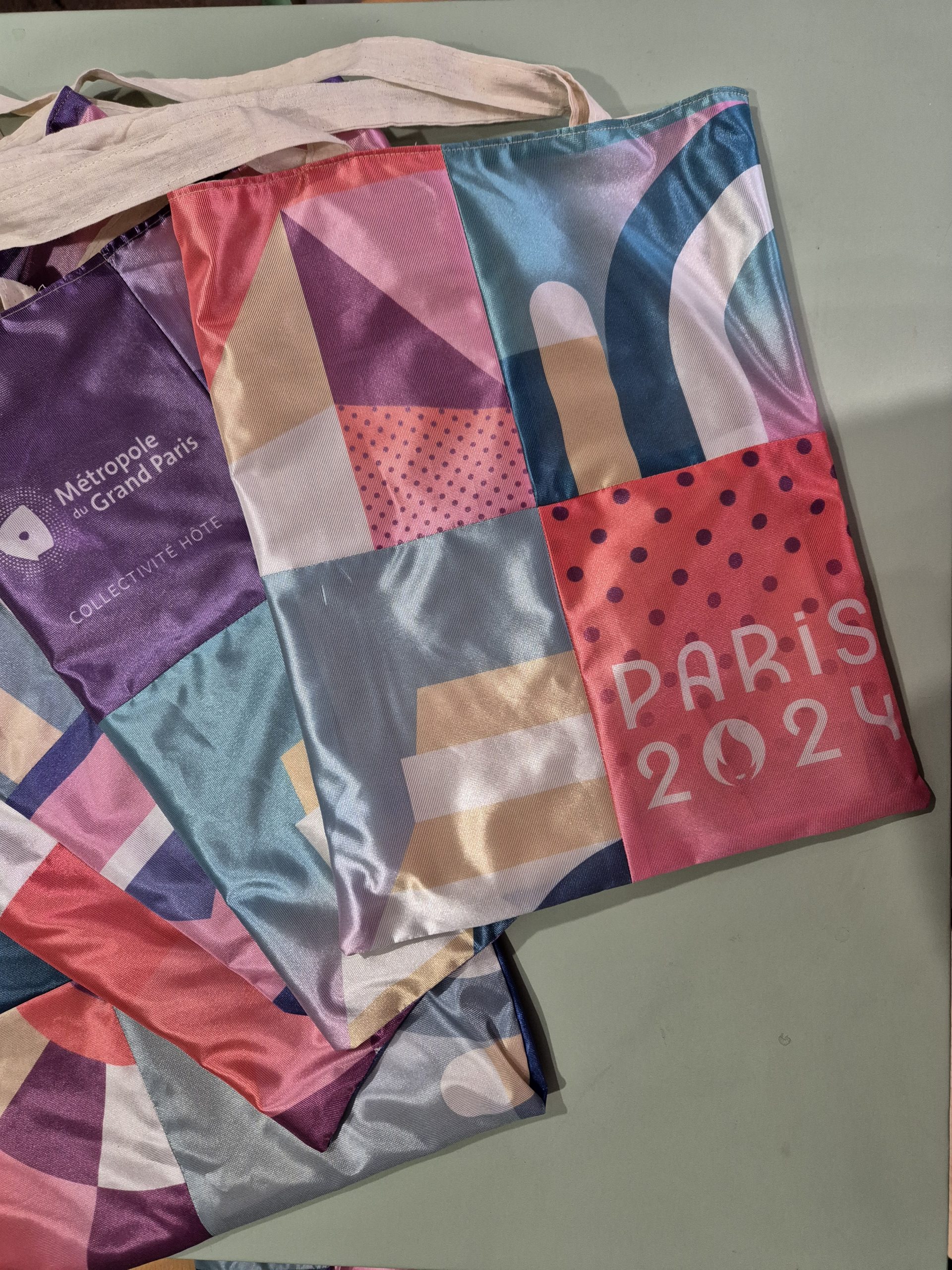 Découvrez nos totebags uniques, conçu à partir de fanions récupérés des Jeux Olympiques, grâce à une collaboration avec la mairie de Romainville. Ce sac écoresponsable allie style et durabilité, tout en rendant hommage à l’esprit des Olympiades.